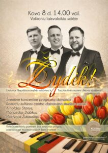 Nuoširdžiai kviečiame Jus į šventinį koncertą, skirtą Lietuvos nepriklausomybės atkūrimo dienai – Kovo 11-ajai ir Tarptautinei moters dienai – Kovo 8-ajai paminėti. Šventinę nuotaiką kurs trys nuostabūs solistai, dovanojantis jautrias, ir širdį paliečiančias dainas.