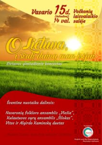 LIETUVA – TU MANO SAULĖ ! Koncertas skirtas Vasario 16 dienai minėti.