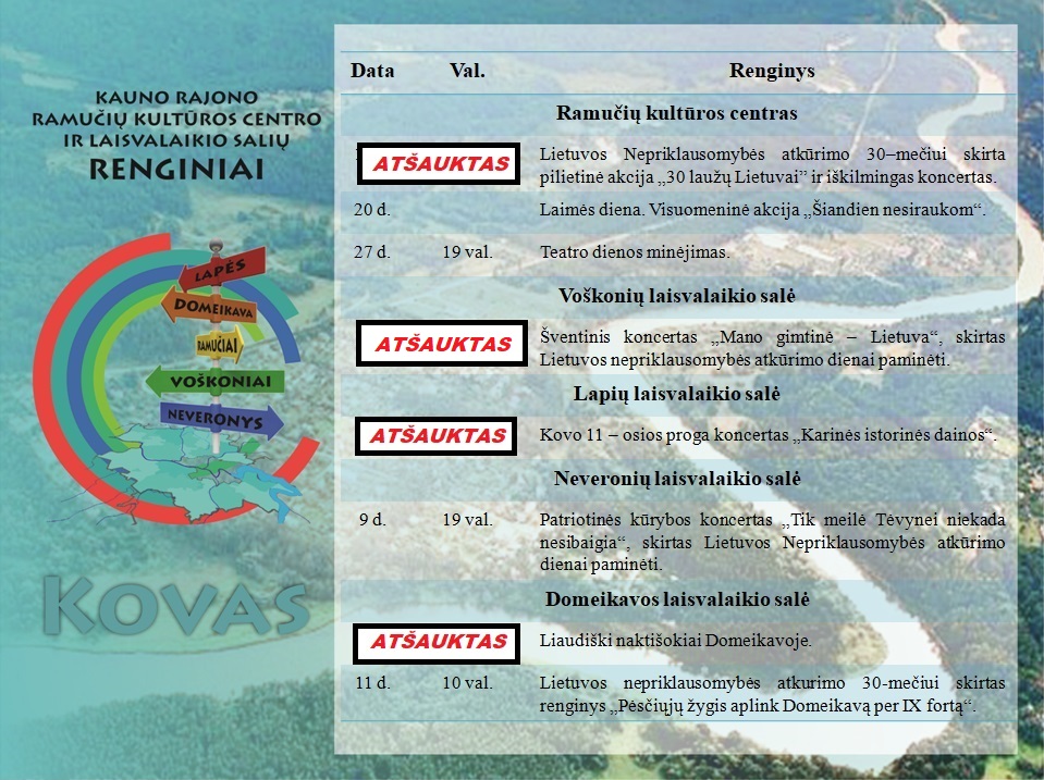 Prašome atkreipti dėmesį į ATŠAUKTUS Kauno rajono Ramučių kultūros centro ir laisvalaikio salių renginius, dėl koronaviruso infekcijos grėsmės. ????