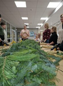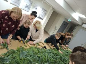 Kartu su edukatore ir floriste Jolita Juščiene nėrėme į Advento/Kalėdinio vainiko pynimo pasaulį — ir tikrai, nerealiai gražių vainikų pripynėme!