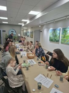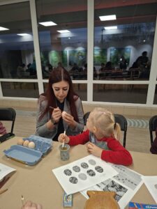 Susirinkę dalyviai mokėsi tradicinio kiaušinių marginimo vašku būdo, dalinosi šypsenomis, šiltais pokalbiais bei gera nuotaika. Kiekvienas margutis tapo savitu, spalvingu pasakojimu, o vakaras – gražia bendrystės akimirka.