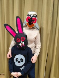 Edukaciją vedė Ramučių kultūros centro dizainerė Jolita Juščienė, pakvietusi dalyvius leistis į kūrybinę kelionę – eksperimentuoti su spalvomis, įvairiomis medžiagomis ir savo vaizduote. Taip gimė išskirtinės, nuotaikingos ir savitą charakterį turinčios kaukės.
